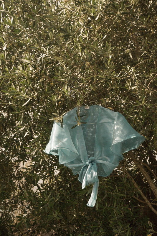 Top de organza com pontas compridas. Opção de traçar ou dar laçada à frente.